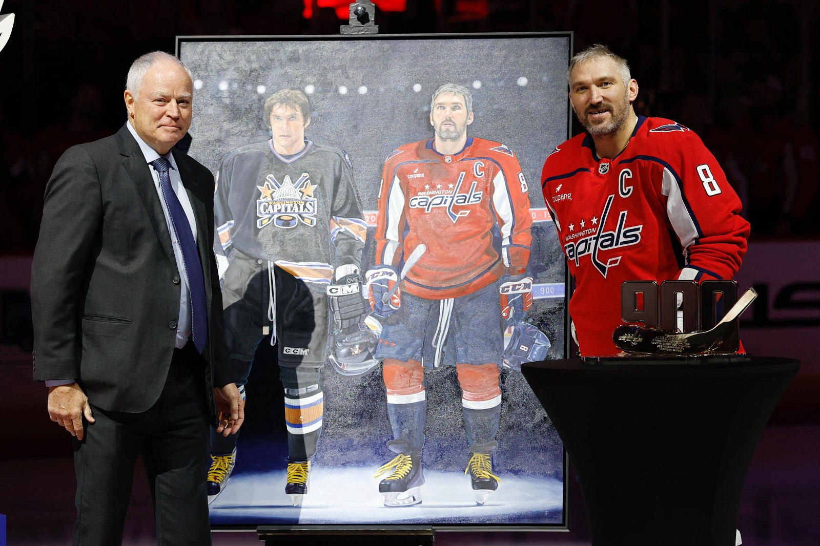 Мероприятие прошло перед началом встречи с «Виннипегом». На нём присутствовала мама игрока Татьяна Овечкина, его жена Анастасия и дети Сергей и Илья. В рамках церемонии Овечкину подарили портрет с его изображением и золотую модель части клюшки с отметкой 900.