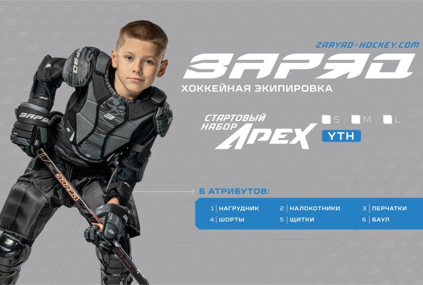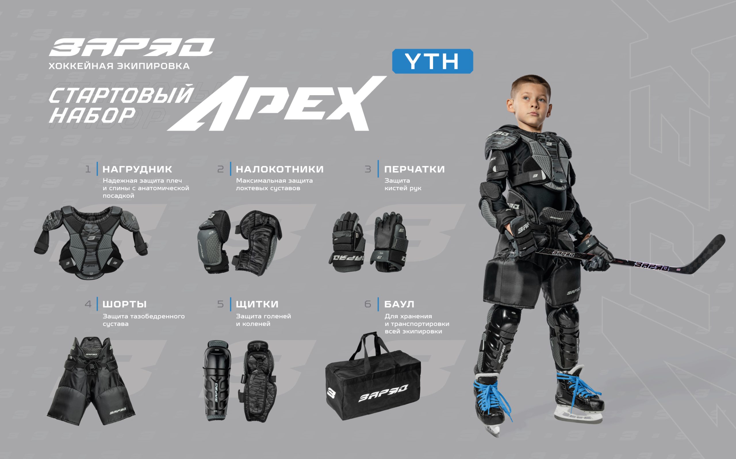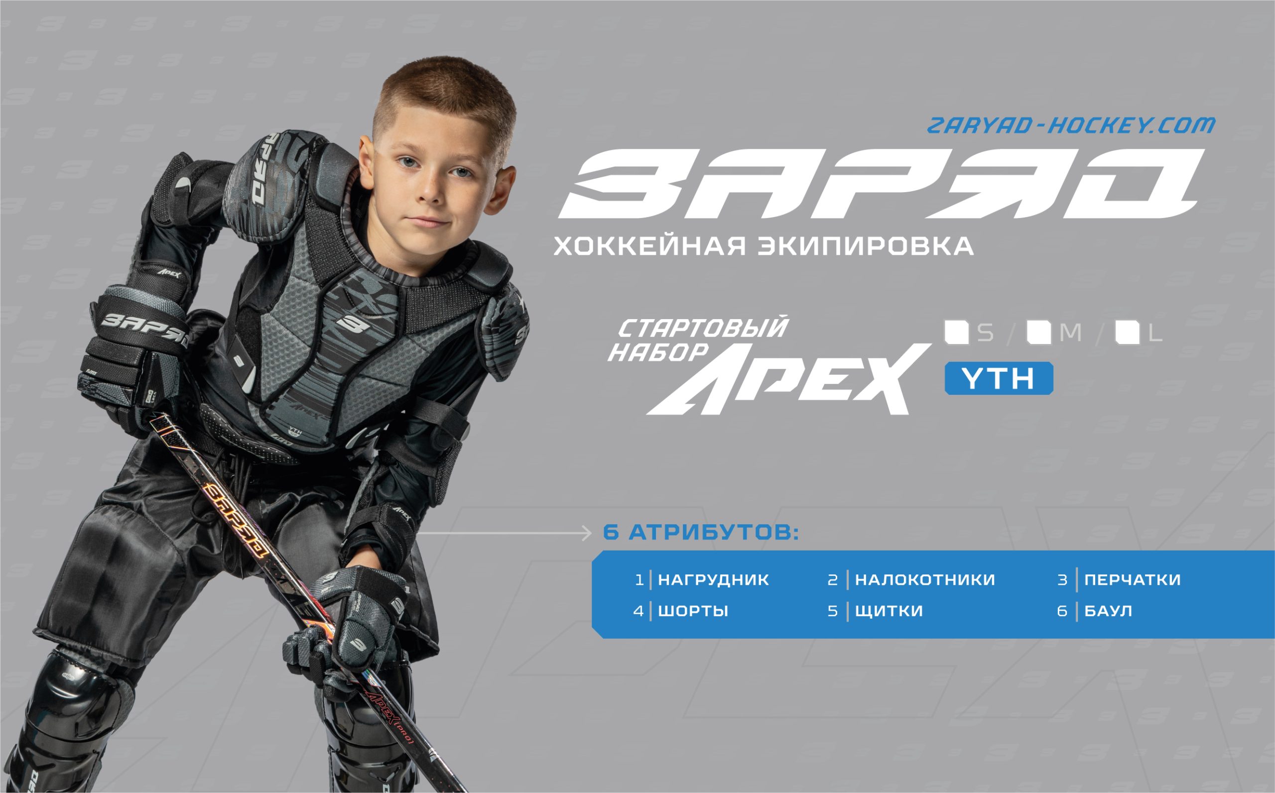«ЗаряД Apex» — это специально разработанная линейка для начинающих игроков, сочетающая в которая сочетает в себе отличную защиту и максимальный комфорт. Набор представлен в трёх размерах S, М, L.
